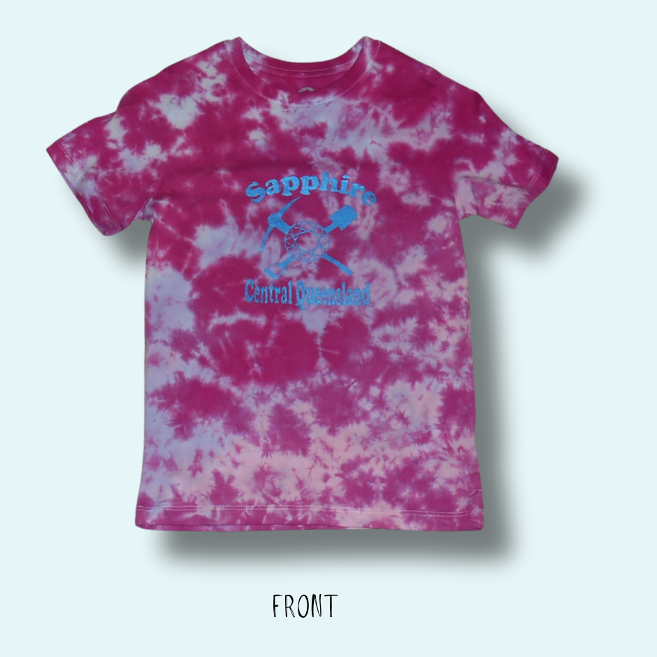 Kid’s Size 8 – Sapphire Printed – Tie Dyed Sunset Scrunch Crew Neck Cotton T-Shirt